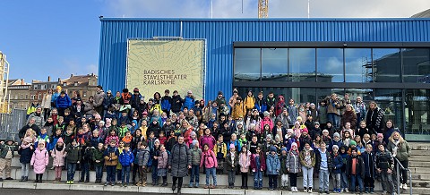 Zur Einstimmung auf die nahende Adventszeit besuchten die Schülerinnen und Schüler der Grundschule und die Grundschulförderklasse des Alfred-Delp-Schulzentrums auch in diesem Jahr die Weihnachtsvorstellung des Badischen Staatstheaters. Passend zum Märchen “Die Schneekönigin“ von Hans Christian Andersen fuhren 169 Kinder bei bestem Winterwetter und eisiger Kälte mit drei großen Reisebussen nach Karlsruhe.