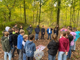 Am 20.Oktober 2025 ging die Klasse 6c mit ihren Klassenlehrerinnen Frau Lakus und Frau Stanka in den Wald. Als wir uns morgens im Klassenzimmer trafen warteten wir schon voller Vorfreude darauf,
