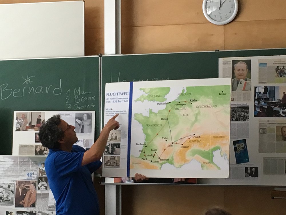 Viele Jahre zuvor hatte sein Vater Herman Zimmerman, einem Juden, der dem Holocaust auf einer langen gefahrvollen Flucht entkommen konnte, seine Lebensgeschichte den Schülern erzählt. Er starb vor fünf Jahren und deshalb nahm sein Sohn sich nun dieser Aufgabe an, möglichst vielen jungen Menschen vom Leben seines Vaters zu berichten. Aber er möchte auch vor allem für die Juden sprechen, die den Holocaust nicht überlebten und berichten, was mit ihnen passiert ist, damit das Geschehene nie in Vergessenheit gerät.