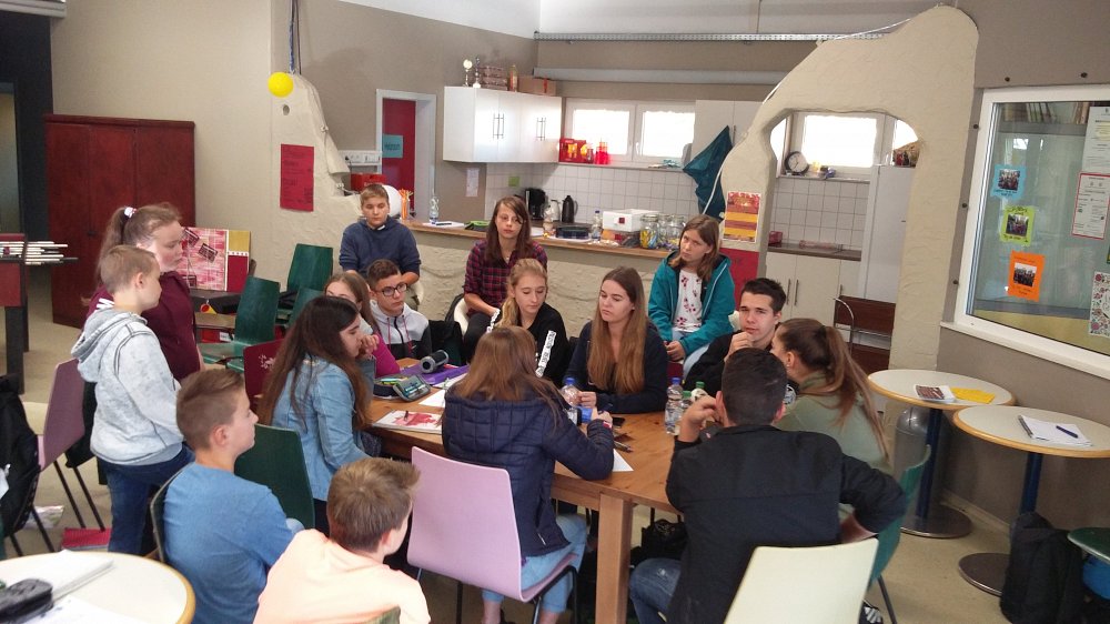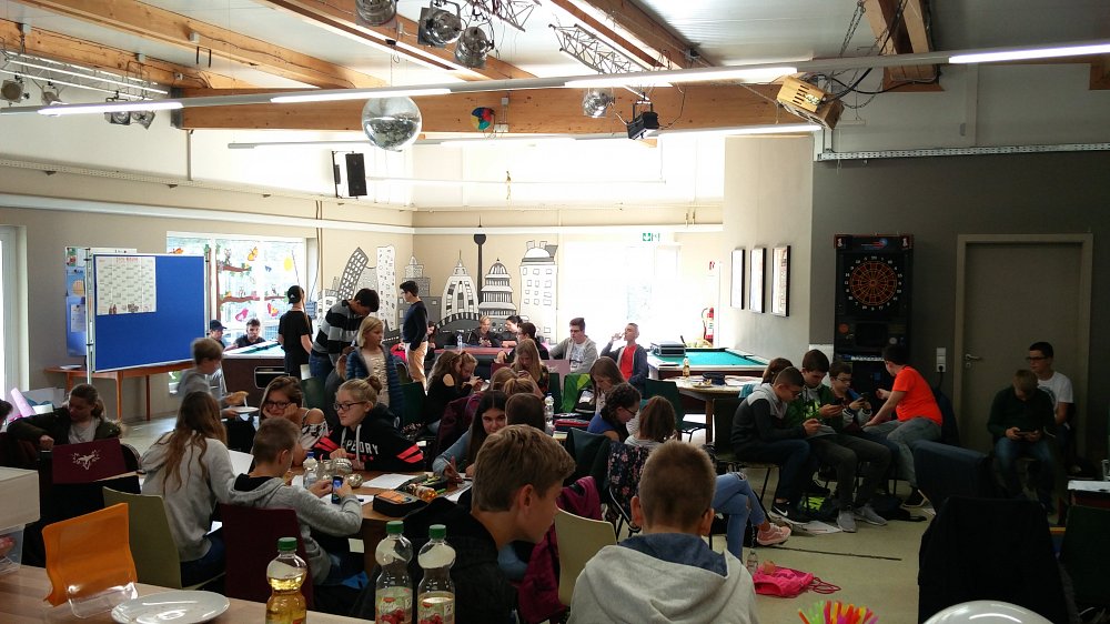 Vom 16. – 17.10.2017 trafen sich alle Klassensprecherinnen und Klassensprecher der Realschule und der Werkrealschule zur gemeinsamen Weichenstellung für das angefangene Schuljahr. Diesmal stellte die Gemeinde das Jugendzentrum „2gether“ als Tagungsort zur Verfügung. Das hatte, neben den vielen Spielmöglichkeiten vor Ort, den Vorteil, dass die SchülerInnen die Einrichtung und deren Angebote kennenlernen konnten.