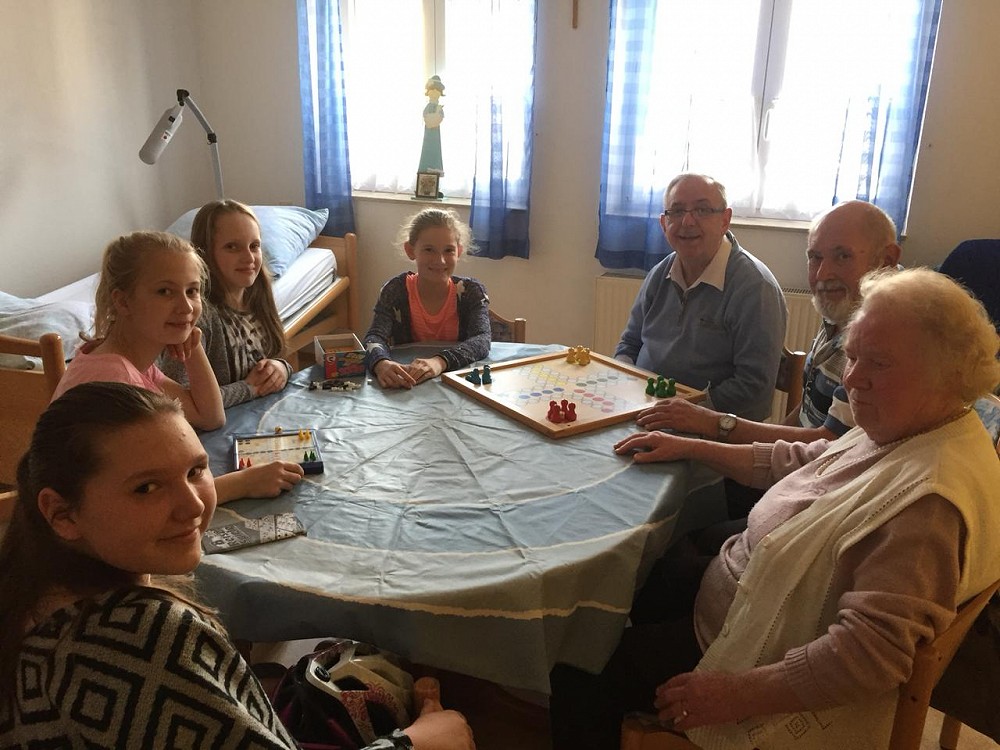 Nach einer kurzen Vorstellung, ging es dann auch gleich los. In Gruppen spielten die Schülerinnen und Schüler mit den Senioren Mau-Mau, Bingo oder Mensch-Ärger-Dich-Nicht.