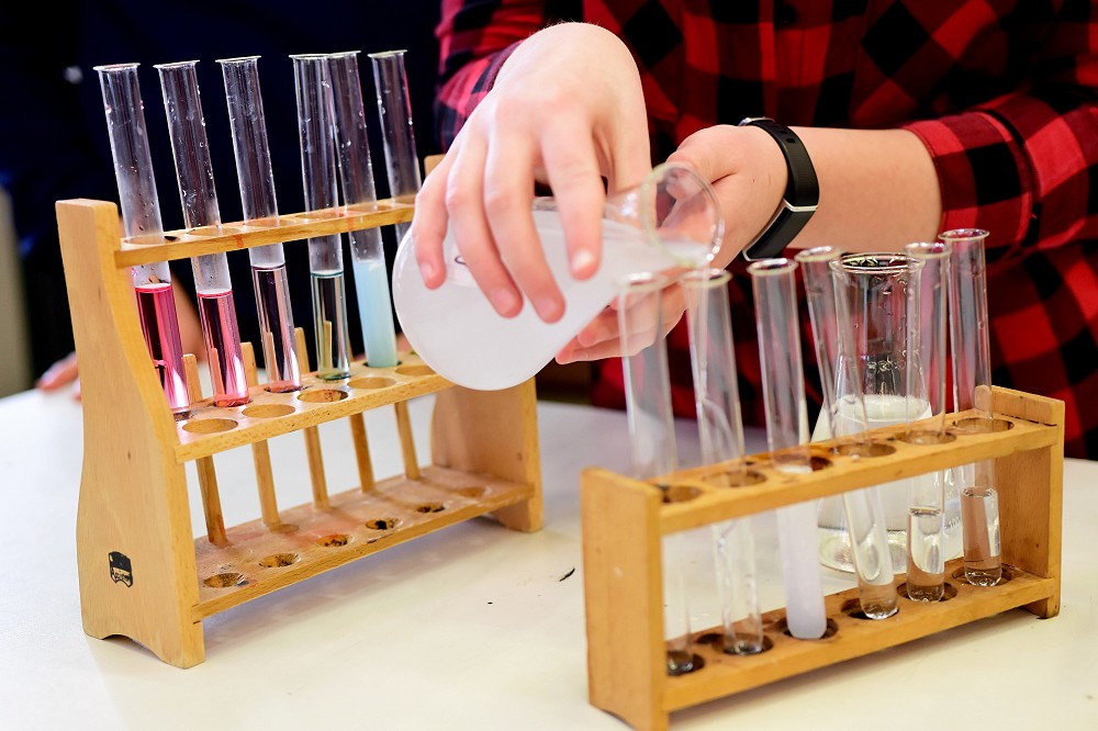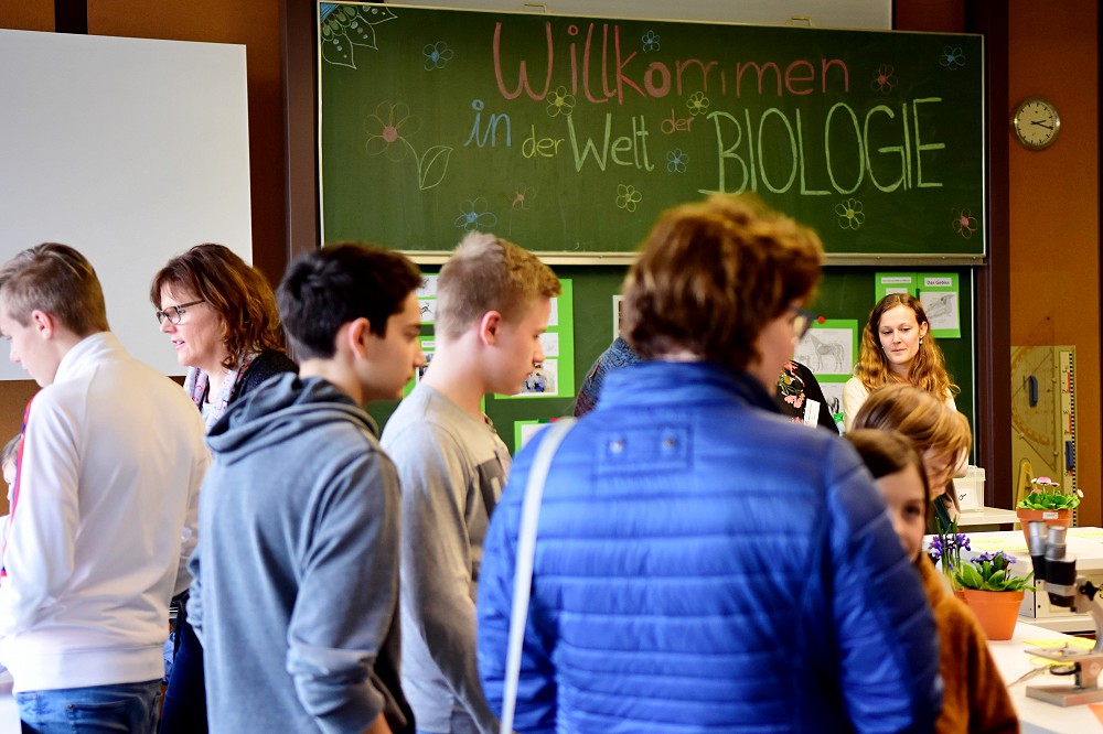 Auch in diesem Jahr führten die Schülerinnen und Schüler der neunten und zehnten Klassen gekonnt die Eltern mit ihren Kindern durch das Schulgebäude und beantworteten dabei ihre Fragen. In den Klassenräumen der Abteilung Realschule stellten sich die verschiedenen Fachbereiche mit vielen interessanten Materialien und Stationen zum Mitmachen und selbst Ausprobieren vor. Viele Kinder zeigten an diesem Tag eine große Ausdauer und Motivation und schnupperten in viele Fächer der weiterbildenden Schule hinein. Sie werkelten im Technikbereich, lernten die Welt der Chemie oder Physik kennen, durften im Fach AES (Alltag, Ernährung und Soziales) selbstgebackene Kekse und Muffins probieren und mit dem Thema „Vive la France!“ in das nahegelegene Frankreich reisen.