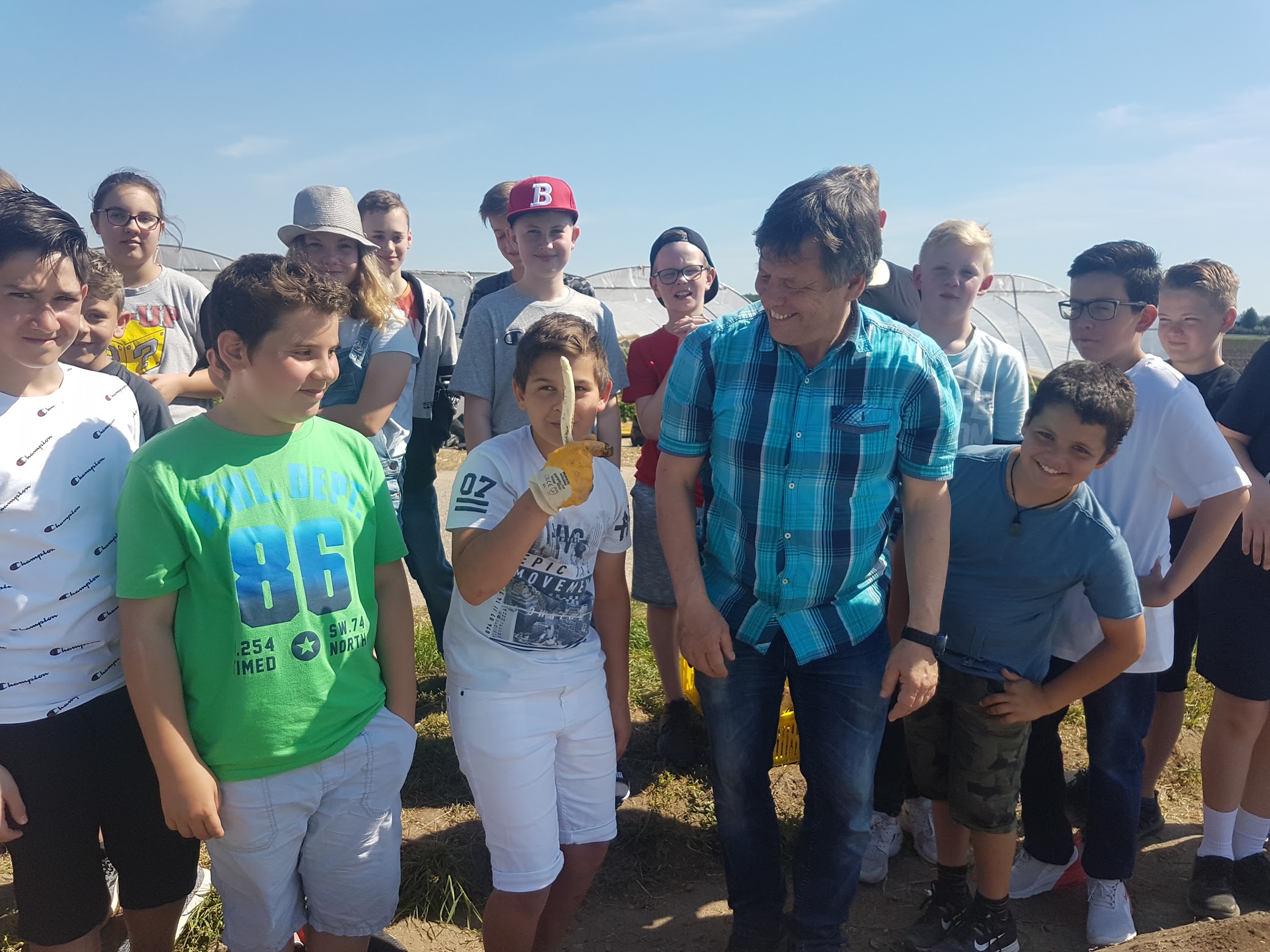 Sonderkulturen der oberrheinischen Tiefebene sind Teil des Bildungsplanes Geographie. Dieses Thema hat die Klasse 6a mit allen Sinnen bei der Exkursion zum Erdbeer- und Spargelhof Böser in Forst erleben dürfen. Nach einer kurzen Wanderung gab es eine Einführung in den Spargelanbau mit seinen biologischen, wirtschaftlichen und technischen Aspekten. Fragen zu Bewässerungsarten, den Arbeitsmöglichkeiten und dem richtigen Anbau wurden von Herrn Ottmar Böser beantwortet.