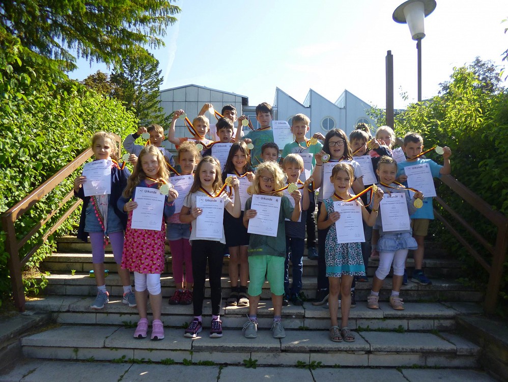 Erst zum dritten Mal wurde dieser Wettbewerb für Schülerinnen und Schüler der Klassen 1 und 2 angeboten. Beide ersten Plätze gingen an unsere Mannschaften und die jungen Sportler nahmen sichtlich stolz ihre Medaillen mit nach Hause.