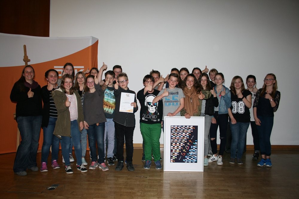 Am 4. Mai war es soweit! Wir, die Klasse 7b und die Lehrerinnen Frau Reck und Frau Seitz, machten uns auf den Weg nach Stuttgart, denn wir waren zu einer Preisverleihung des Plakatwettbewerbs „bunt statt blau“ an der Max-Eyth Schule eingeladen. Der Sinn des Plakatwettbewerbes der DAK war, dass Kinder und Jugendliche mit ihren Plakaten ihre Jugendliche und auch Erwachsene vor Alkohol warnen und daran erinnern, dass sie lieber bunt durch das Leben gehen statt betrunken.