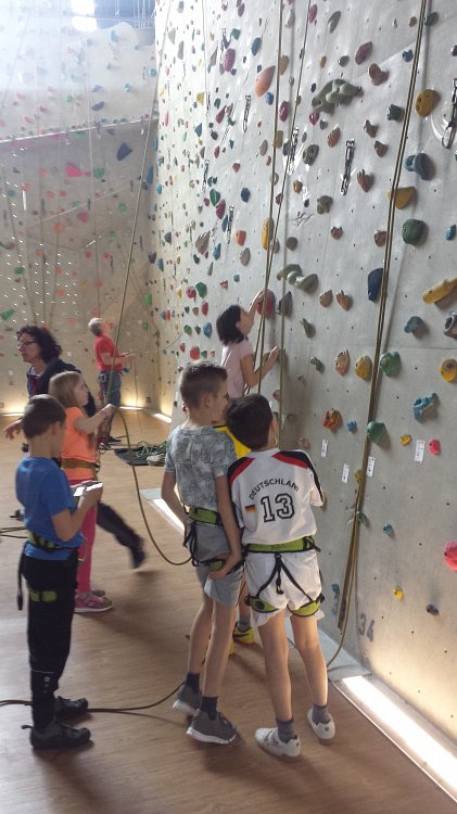Endlich war es soweit: Nach vielen Wochen des Übens gingen wir von der 5c mit unserer Sportlehrerin Frau Fellhauer und unserer Klassenlehrerin Frau Fürbaß in die Kletterhalle „The Rock“ nach Karlsruhe. Schon vorher waren wir alle sehr aufgeregt und gespannt, was uns erwarten würde. Nach einer letzten Einweisung ging es los: In Gruppen sicherten wir uns gegenseitig und die Ersten stiegen an der 10 Meter hohen Kletterwand in die Höhe. Zum Glück konnten wir in unseren Klassenkameraden vertrauen, die uns gesichert haben. Besonders das Abseilen machte großen Spaß! Im Boulder-Bereich konnten wir sogar ganz ohne Seil klettern, denn hier war alles mit weichen Matten ausgelegt. Wir waren alle sehr stolz, wie hoch wir uns getraut haben. Obwohl wir anfangs doch ein mulmiges Gefühl hatten, hatten wir großen Spaß. Mit ordentlichem Muskelkater und einem dicken Grinsen im Gesicht, kamen wir nachmittags wieder in Ubstadt an. Wir sind froh, dass wir so eine tolle Sportlehrerin haben, die das alles möglich gemacht hat.