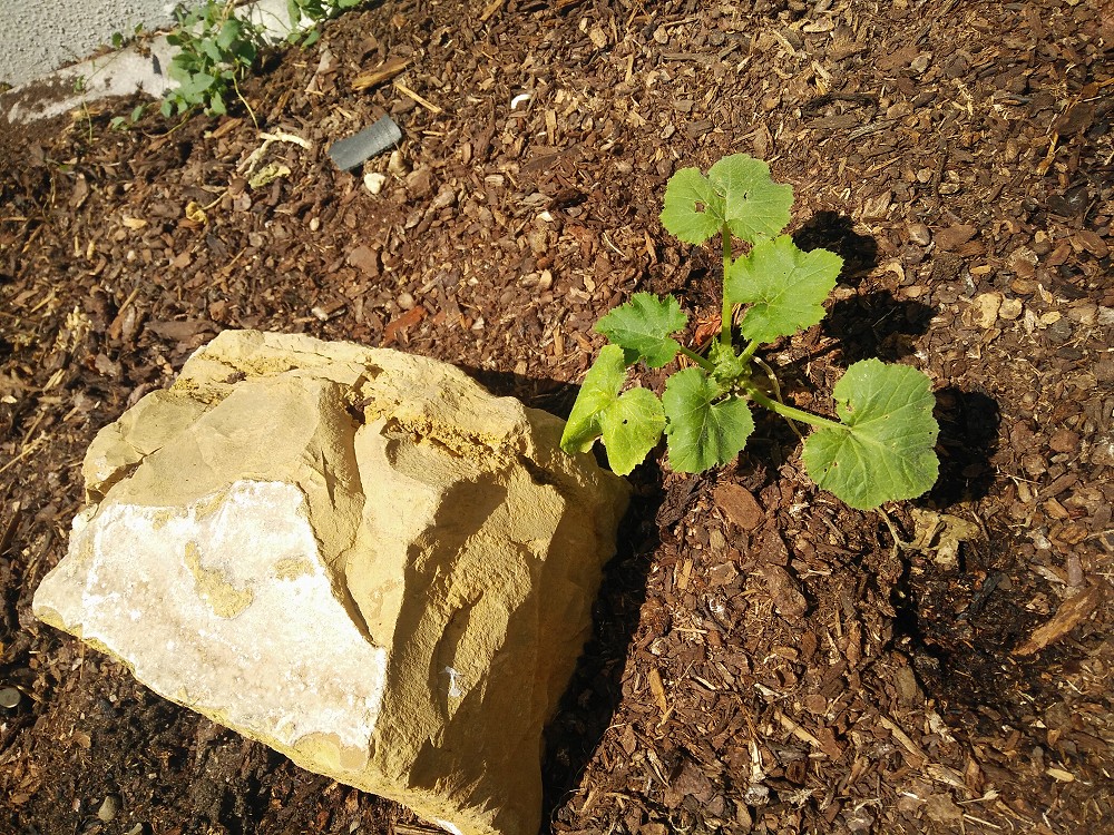 Nur wenige Wochen nach dem Bepflanzen des Gartens hat sich schon einiges getan worauf die Schülerinnen und Schüler stolz sein können: Die erste Erdbeere ist reif, die Tomaten werden immer größer, ein Kürbispflänzchen hat sich gegen die trockene Erde durchgesetzt, der neugepflanzte Apfelbaum blüht und auch die Blumen am Rand gedeihen. Es gibt zwar noch viel zu tun, aber ein Anfang ist gemacht!