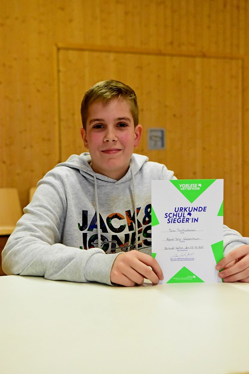 Tom Trakostanec aus der Klasse 6b glänzte in dieser Vorleserunde und wurde somit zum Schulsieger ernannt. Die Jury gratulierte dem Schulsieger mit einem Buchgutschein und einer Urkunde.